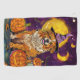 Embrace the Halloween spirit with this enchanting design featuring a cute dog in a witch hat surrounded by carved pumpkins. Perfect for adding a touch of spooky charm to your festive celebrations.
