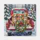 Celebrate the holiday season with this energetic and beautiful Nova Scotia Duck Tolling Retriever Christmas design! This cheerful scene features three bright, reddish-gold Tollers sitting happily in the back of a classic red pickup truck, nestled in a picturesque snowy winter forest. The vintage truck is adorned with a vibrant Christmas wreath, twinkling with red and gold ornaments and warm, glowing lights. Soft snowflakes gently fall, enhancing the winter wonderland effect. A decorated Christmas tree in the background completes this heartwarming picture, making it an ideal Christmas gift for any Toller owner, dog lover, or admirer of festive and active dog breeds. This design perfectly captures the joyful spirit of the holidays.