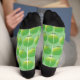 Vegetable socks with a pattern of smiling Brussels sprouts on a green background.