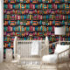 Wallpaper that looks like bookshelves! Diy home project ideas to use this Novelty Library Bookcase wallpaper: creating a wall mural of books to admire for booklovers, to actually cutting out pieces putting them on the back of a bookshelf, or placed on other furniture or even doors to enjoy a book lover's dream creation. This unique seamless repeating pattern is ready to help you create your own reading or study room space.