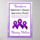 November is Alzheimer's Disease Awareness Month purple awareness ribbon poster. Good sign for doctor office or health related business.