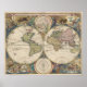 Hand coloured double hemisphere map of the world from 1690 with insets of Arctic and Antarctic. Surrounded by decorations scenes and signs of the Zodiac and angels. California is shown as an island. There is only one open ended Great Lake. Australia and New Zealand are incomplete. Antarctic shown without land masses. Shows rivers, mountains and some landmarks. Relief shown