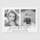 "Now and Then" photo graduation announcements featuring your graduate's favorite senior photo (now) as well as a baby or toddler photo (then). Change the years below each photo to reflect the graduation year and birth year (or year the photo was taken). The modern graduation announcements display "graduate" in an elegant script font with the graduate's name, school name, and class year below.