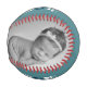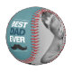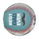Lovely customisable baseball featuring two pictures of your child with the wording "Now and then" between them: you can easily add one old/newborn picture in black and white on one side, and an actual colour photo on the other side. This baseball is completed by a "Best dad ever" typography script in white and blue font, with a black moustache on a teal background.