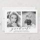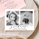 Our stylish "Now and Then" photo graduation party invites display your graduate's favorite senior photo (now) as well as a baby or toddler photo (then). Change the years below each photo to reflect the graduation year and birth year (or year photo was taken). The modern graduation party invitations display "graduate" in an elegant script font with the graduate's name, school name, and class year below. The reverse side of the trendy graduation party invitations features your party details against a blush pink watercolor background.