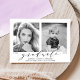 Our stylish "Now and Then" graduation photo announcements display your graduate's favorite senior photo (now) as well as a baby or toddler photo (then). Change the years below each photo to reflect the graduation year and birth year (or year photo was taken). The modern graduation announcements display "graduate" in an elegant script font with the graduate's name, school name, and class year below. The reverse side of the grad announcement features a soft purple watercolor background. Add a photo or text to the back for a more personalized design!