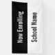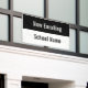 This Now Enrolling banner has a black stripe at the top. White display text is on the black stripe. The bottom stripe is white and has black text for the school name. All text can be edited or deleted.