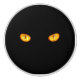 Piercing orange eyes are all you can see of a black cat.