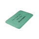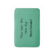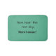 A bath matt that reads, "Now hear this new day, here I come! With a teal green background