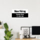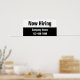 The top portion of the poster is white. Black display text is at the top. You can edit the text to show a custom message. (Shown: Now Hiring) The bottom portion is black with white text. There are two lines of display text at the bottom. You can edit them to show a custom message such as your company name and phone number.