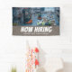 Attract motivated workers with this NOW HIRING Overtime Available banner. Featuring a professional warehouse scene with forklifts, safety-vested staff, and stacked inventory shelves, this banner communicates not just open positions — but the added incentive of overtime pay.