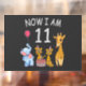 Happy 11th Birthday. Funny and lovely Kids Birthday design with a cute Elephant, two ferrets and a giraffe celebrating your birthday at the zoo.