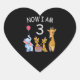 Now I am 3 year old 3rd Birthday at the Zoo Heart Sticker