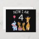 Now I am 4 year old 4th Birthday at the Zoo Postcard