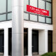 This now leasing banner is bright red. The text is white. Now leasing is below large numbers that you can edit to show a custom message such as your phone number.