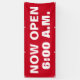Grow your business with this Now Open Custom Time Business Banner. It is designed with a customisable red background and large bold minimal lettering. The text is "now open" followed by customised time and you can change the words if needed by clicking the personalise template option. Available in different sizes.