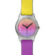 They color and design is exactly what I expected. Decent quality watch however the buckle is plastic that seems a little flimsy. They design is really cute and the colors were true to what showed online. If recommend offering a larger or oversized option since the is the design on the face and it is really quite small. It could be more of a statement pice of it was larger.