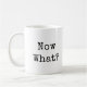 "Now What" This simple message is written in modern black font on a clean, white mug -- this is a great way to show you are frustrated, aggravated or just plain perplexed!