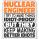 Funny Nuclear Engineer Sayings "Nuclear Engineer I Try To Make Things Idiot Proof But They Keep Making Better Idiots". Grab this Funny Nuclear Engineer design as a funny gifts for an awesome mum, dad or friend.