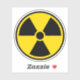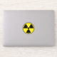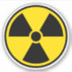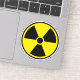 Sticker featuring a black nuclear radiation symbol on a yellow circle with black outline