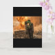 This provocative greeting card offers a darkly humorous take on love with a bold, eye-catching design that juxtaposes romance and catastrophe. The cover features a stark, graphic illustration of two people locked in a passionate kiss, framed against the backdrop of a massive, stylized nuclear blast.