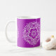 This white mandala sits on a bright purple background. The colour is bright and creative. Part of the Jarn Mandala Collection. This design may not print as bright as it appears online.