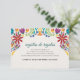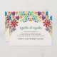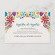 This Nuestra Boda Flowers Botanical Spanish Wedding Enclosure Card design showcases a rich and vibrant floral arrangement around the edges, with bold colors like red, orange, blue, purple, and yellow that create a festive and welcoming feel. The flowers are intricately combined with leafy patterns and small, detailed embellishments, giving the design a lively and textured look. The balance of bright, contrasting colors and the delicate, symmetrical arrangement make this an eye-catching option for a celebratory wedding stationery, especially one with a traditional or folkloric theme.