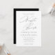 Invitación de boda minimalista y elegante en blanco y negro, con 'Nuestra Boda' en caligrafía moderna. Editable en colores para adaptarse a tu estilo personal. Un código QR personalizado para tu sitio web de boda en la parte posterior.
