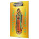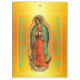 Nuestra Señora de Guadalupe Portapapeles ... Nuestra Señora de Guadalupe ... En diciembre de 1531 la Virgen María se apareció en una colina a un azteca Juan Diego pidiéndole que le construyera una capilla allí. Llevaba una prenda de colour rosa con diseños de plantas para su asociación mundana y una túnica azul turquesa con estrellas doradas para su asociación celestial. Cuando el arzobispo español exigió prueba de un milagro, ella proporcionó rosas españolas que el azteca Juan Diego llevó al arzobispo español en su manto o tilma ... cuando las rosas se derramaron por el suelo apareció la imagen de la Virgen María sobre el manto tilma . Esta imagen aún existe encerrada en el altar de la capilla construida sobre el cerro en la Ciudad de México. Esta imagen es una de las imágenes devocionales más populares del mundo en la actualidad. Siempre se la muestra rodeada de luz deslumbrante ... así se le apareció a Juan Diego.