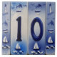 Dolphins, sailing yachts, and lighthouses in blue hand drawn style, with the number 10 makes this authentic dutch style design.