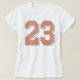 Number 23, red washed out with graphic detail. Grey drop shadow