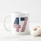 This mug features the number "47" adorned with a stars and stripes design, reminiscent of the American flag. This mug is perfect for celebrating milestones, whether it's the 47th birthday of a loved one, the 47th President, or honouring a favourite athlete's jersey number. The colours and patriotic theme makes it a great gift for anyone who loves their American pride or enjoys a touch of unique flair in their morning routine. Whether you're sipping coffee, tea, or any beverage of choice, this mug is a stylish statement piece that embodies celebration and camaraderie.