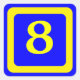 number 8, blue background, yellow frame