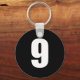big and bold number 9 in white on the centre of black background button keychain With this numbered keychain, you can have your lucky number or your favourite number everywwhere you go. Enjoy and have fun to mix and match with the other items from our numbered series at our store GrafiGoodies. These numbered items can help you to classify your stuff easily. It is also a good choice for a small present.