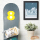 Number Eight. Number 8 Individual number as a sticker. Gold and White. 8x8 inches