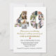 Celebrate your love with a unique forty-year wedding anniversary invitation! This beautifully designed card features a striking photo collage cutout shaped like the number forty, allowing you to showcase 15 of your favourite memories from your 40 years together. The invitation highlights the event details. Perfect for inviting friends and family to join you in celebrating this special milestone, each card is crafted with care to reflect the joy of your journey together. Make your anniversary unforgettable with this personalised touch!