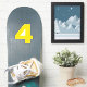 Number Four. Number 4 Individual number as a sticker. Gold and White. 8x8 inches