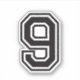 Number nine sticker. Sports college font in black. The complete alphabet and numbers 0-9 are available.