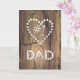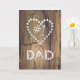 Greeting card for Father's Day with my design of nails spelling out "Number One Dad" in a heart shape on a wood-look background.