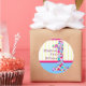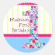 A fun polka dot number one decorates this colourful first birthday sticker. All you have to do is customise with the birthday girl or boy name and you're all set! Coordinating products are available including invitations, thank you cards, buttons and magnets.
