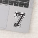 Number seven sticker. Sports college font in black. The complete alphabet and numbers 0-9 are available.