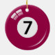 Ornament featuring a maroon number seven pool ball with reflection. Perfect christmas or birthday gift for pool players. All sixteen balls are available on coasters, stickers, magnets, keychains and ornaments.
