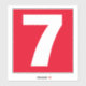 Number Seven. Number 7 Individual number as a sticker. Red and white. 8x8 inches