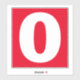 Number Zero. Number 0 Individual number as a sticker. Red and white. 8x8 inches