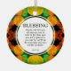Numbers 6:24-26 MAY THE LORD BLESS YOU Ceramic Ornament. A stylish Christian Bible verse ornament with inspirational text based on the biblical blessing in Numbers 6:24-26, which commences MAY THE LORD BLESS YOU AND KEEP YOU. The design shows a citrus orange and green bokeh pattern in the background. The Scripture verse is CUSTOMIZABLE so you can change to your preferred Bible version. Choose from a wide selection of matching gifts. Comes in other colours.