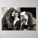 An old black and white photograph of a group of nuns lighting a cigarette. The contrast of the nuns smoking gives the photograph character and attitude that suits a trendy home.