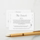 Reverse features the remainder of information for a wedding enclosure card displayed in an elegant silver-colored font. Headings are displayed in in same Nuptial font while the other information is featured in a print. Addresses are displayed in bold.