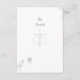 Design front features customisable heading displayed above the image of a cross with joined wedding rings in centre. Top right and bottom left corners feature the image of roseleaves. Bottom left corner also depicts the image of two doves, one in flight towards the other.