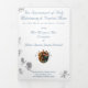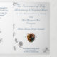 With explanations of the Mass displayed throughout, this elegant design also includes the name of the wedding officiant, names of altar servers, names of the parents of the bride and parents of the groom, wedding party names including the names for a maid-of-honor and best man, room for up to seven bridesmaids and groomsmen names, plus the names of the flower-girl and ring bearer.