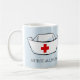 Show your appreciation for your favourite nurse! This mug features a nurse's cap with a name for you to personalise on the left. Text on the right reads "You are truly Appreciated!" Background is pale blue stripes.